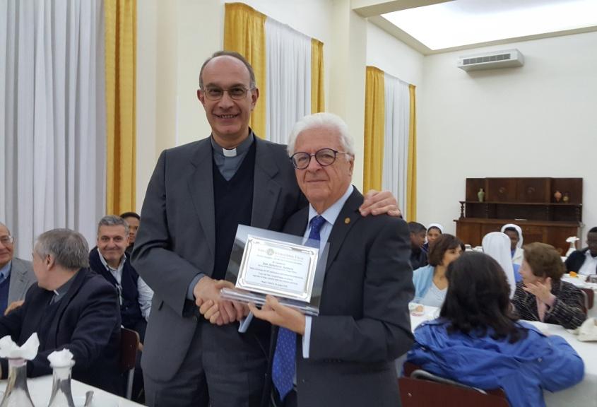 E’ seguito il consueto incontro conviviale con i seminaristi nel corso del quale il presidente Prof. Antonino Gatto ha consegnato una targa ricordo al Rettore Mons. Salvatore Santoro in occasione del 25° anniversario della sua ordinazione sacerdotale. Successivamente la past-President, notaio Alessandra Maltese, ha comunicato l’avvenuta assegnazione di una borsa di studio della Fondazione Serra al Seminarista Danilo Latella.