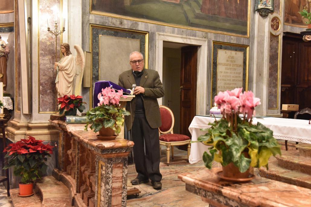 L’incontro si è aperto con la concelebrazione eucaristica presieduta dal Vescovo e cappellano del Club Luigi Testore affiancato dal parroco don Winston Carrera,  dal vice cappellano del Serra club don Domenico Pi­sano, dal direttore della Caritas don Giovanni Falchero, da don Giambatti­sta Giacchero.  Concelebrazione impreziosita dai canti curati da Monica Cavino e dalla figlia Michela, mentre le letture e le intenzioni di preghiera, preparate da Angioletta Olivieri,  sono state lette  da Gian Carlo Callegaro e Elisabetta Ghiglia. Nell’omelia il Vescovo, prendendo  spunto dalla let­tura dal libro di Isaia e dal brano del Vangelo di Luca  è tornato sul senso più profondo dell’annuncio dell’imminente nascita di Gesù  e sul si­gnificato  della parola Emmanuele.