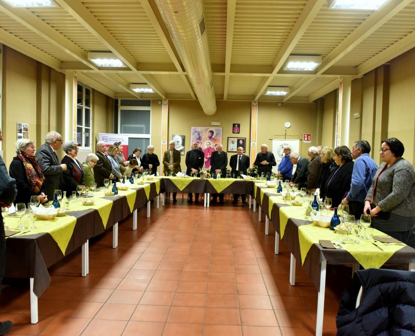 Al termine della celebrazione, i partecipanti, dopo aver brevemente sostato per ammirare il bel presepe realizzato in alcuni locali attigui alla chiesa, si sono trasferiti nella mensa mons. Giovanni Galliano per la conviviale. Nel corso della serata, il presidente Marco Pestarino ha ricordato il Concorso scolastico, riservato agli alunni della Scuola primaria e ai Gruppi di Catechismo, che ha come tema “In un mondo che ha bisogno di amore non si può vivere senza il perdono”. Ha ringraziato la Banca di Asti che anche quest’anno ha dato il suo sostegno economico alla nostra iniziativa e questo ci permetterà di far crescere ulteriormente il numero dei premi destinati ai partecipanti. Sui vari aspetti organizzativi si sono anche soffermati il responsabile del concorso Gian Carlo Callegaro e il segretario del club Michele Giugliano Il presidente Pestarino ha inoltre preso spunto da una delle intenzioni di preghiera lette in chiesa “ Per il Papa, i Vescovi, i Sacerdoti e i Diaconi: perché il Signore li illumini e sostenga nel far crescere la comunità cristiana nella lettura orante della parola, nell’accoglienza, nel servizio e nell’impegno sociale “ricordando come in poche settimane la nostra Diocesi abbia avuto il grande dono di due nuovi diaconi permanenti. Ha ricordato, quindi, come sia sempre importante la “mission” del Serra club per “favorire e sostenere le vocazioni al sacerdozio ministeriale nella Chiesa cattolica, sostenere i sacerdoti nel loro sacro ministero; incoraggiare e valorizzare le vocazioni alla vita consacrata nella Chiesa cattolica; aiutare i propri membri a riconoscere e rispondere, ciascuno nella propria vita, alla chiamata di Dio alla santità in Gesù Cristo per mezzo dello Spirito Santo”.