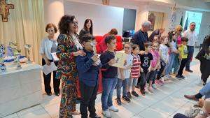 Molto interessante ed emozionante la Catechesi Musicale, a cura di don Michele La Rocca, che ha visto Pompeo Alessandro Interprete dei brani “TI CHIEDO PERDONO” e “Supereroi” , alunno della scuola Primaria Cl. 3^ C I.C. Palazzo Salinari – Montescaglioso . Inoltre, si sono esibite anche alcune alunne dell’istituto comprensivo ‘G.Pascoli ‘ di Matera, Carlotta Crapulli, Claudia Coretti, Valentina Cancro e Adele Vizziello – con i docenti di strumento musicale Rosa Dell’Acqua, Luigi Gallipoli e Nunzia Marcosano.
