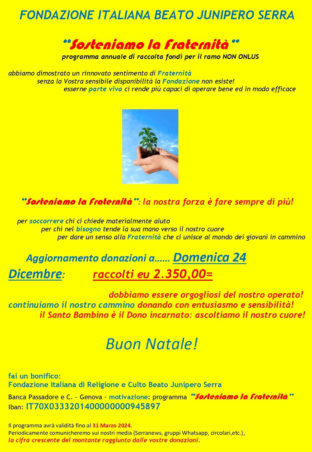 Sosteniamo la fraternità – 1° aggiornamento