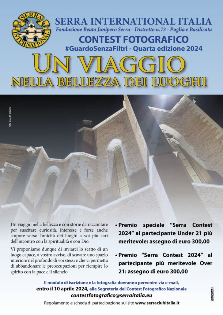 ti informo che è partita la quarta edizione del Contest Fotografico #Guardosenzafiltri indetto da Serra International Italia con la collaborazione della Fondazione Beato Junipero Serra e dal Distretto 73 Puglia-Basilicata.
