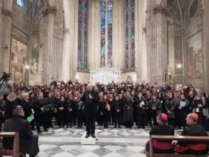 L’annuncio della Fede declinato attraverso le arti. Il secondo fine settimana del Festival dello Spirito ha trovato il proprio filo conduttore nella musica intesa come strumento di espressione e di condivisione della Parola, con un grande concerto in Cattedrale svoltosi sabato 9 marzo che è stato diretto da monsignor Marco Frisina. L’evento, promosso dal Serra Club Arezzo insieme alla Diocesi di Arezzo-Cortona-Sansepolcro e all’associazione culturale Almasen, è stato a partecipazione gratuita e ha riunito quasi cinquecento coristi di oltre trenta formazioni che hanno intonato le rispettive voci in una produzione unica nel suo genere.