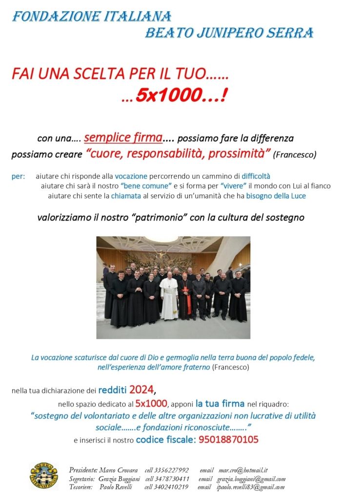 Significano “esserci, mettersi in campo” verso gli obiettivi che ci uniscono. Una raccomandazione speciale a Voi, Presidenti di Club: trasmettete questo invito ai Vostri soci, affinché tutti sappiano che la Fondazione è un bene comune che operando attraverso la comunità dei Serrani italiani valorizza, ancor più, la nostra volontà di sostenere e favorire le vocazioni al sacerdozio ministeriale e alla vita consacrata.