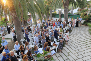 Il tradizionale appuntamento estivo in quell’oasi di bellezza e serenità che è la villa del diacono Mino Gentile, socio serrano, a Luogovivo, quest’anno è stato impreziosito dall’incontro tanto desiderato con il nostro Arcivescovo Ciro Miniero. Nonostante il pomeriggio torrido i soci del Serra Club di Taranto si sono ritrovati numerosissimi intorno al presule che con grande disponibilità e attenzione ha ascoltato la presentazione delle numerose attività svolte che la nostra presidente Maria Cristina Scapati ha descritto con la consueta amabilità. Particolare attenzione è stata rivolta all’impegno a favore del Seminario Minore di Poggio Galeso in cui il Serra Club, negli anni, ha arredato e costituito una cappella per la preghiera dei sacerdoti anziani grazie particolarmente alla fattiva capacità del past president Mimmo Chiffi. Importante anche il sostegno ai percorsi estivi di formazione, a Napoli l’anno scorso e a Palermo quest’anno, dei giovani seminaristi e la partecipazione attiva ai momenti principali delle loro attività.