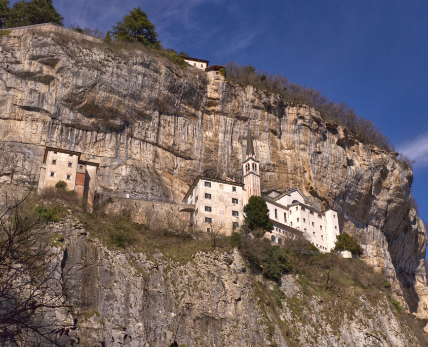 Santuario Madonna della Corona, un luogo impervio, isolato, aggrappato alla roccia a strapiombo sul vuoto, dive la pace e il silenzio donano serenità, dove rigenerare lo spirito dopo una faticosa discesa o una estenuante e durissima salita.