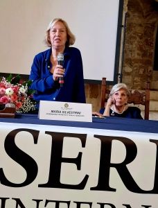 Dopo la partecipazione all’Eucarestia concelebrata dal cappellano del Castello don Pasquale Di Donna e da quello del Serra don Ennio Tardioli, nella sala Celestino si è svolto il passaggio di consegne fra Milena Caldara del Club di Cerignola e Maria Silvestrini del Club di Taranto. Con brevi parole Milena ha ricordato i momenti salienti del biennio appena trascorso in cui particolare rilevanza assume la ripartenza del Club di Foggia. E’ stato “un camminare insieme” condotto con dolcezza ed amabilità. Camminare insieme vuol dire anche sostenersi a vicenda, e Maria ha delineato la sua modalità di pensare e vivere il Serra Club nell’ottica di essere custodi gli uni degli altri, di costruire legami e di vivere con passione, progettualità e pragmatismo la nostra appartenenza.