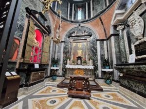 Il santo li portò alla fontana, che si trovava all’interno per lavarli e non appena il primo pesce fu lavato, ecco che risuscitò e venne lasciato in quella vasca, dove visse per tanti anni.