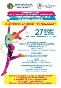 Mercoledì 27 novembre, nell’aula magna della Scuola Colombo, il Serra club di Taranto ha presentato il tema del Concorso scolastico nazionale indetto anche quest’anno dal CNIS. La presidente Maria Cristina Scapati ha ringraziato il preside Giovangualberto Carducci ed i docenti presenti, lasciando a Mariangela Tarantino, responsabile del progetto, le indicazioni relative allo svolgimento del concorso.
