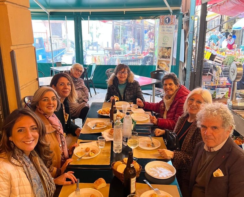 A conclusione del momento di approfondimento, ci si è fermati nelle stradine del Capo per condividere lo street food palermitano e continuare a trascorrere del tempo in amicizia e semplicità