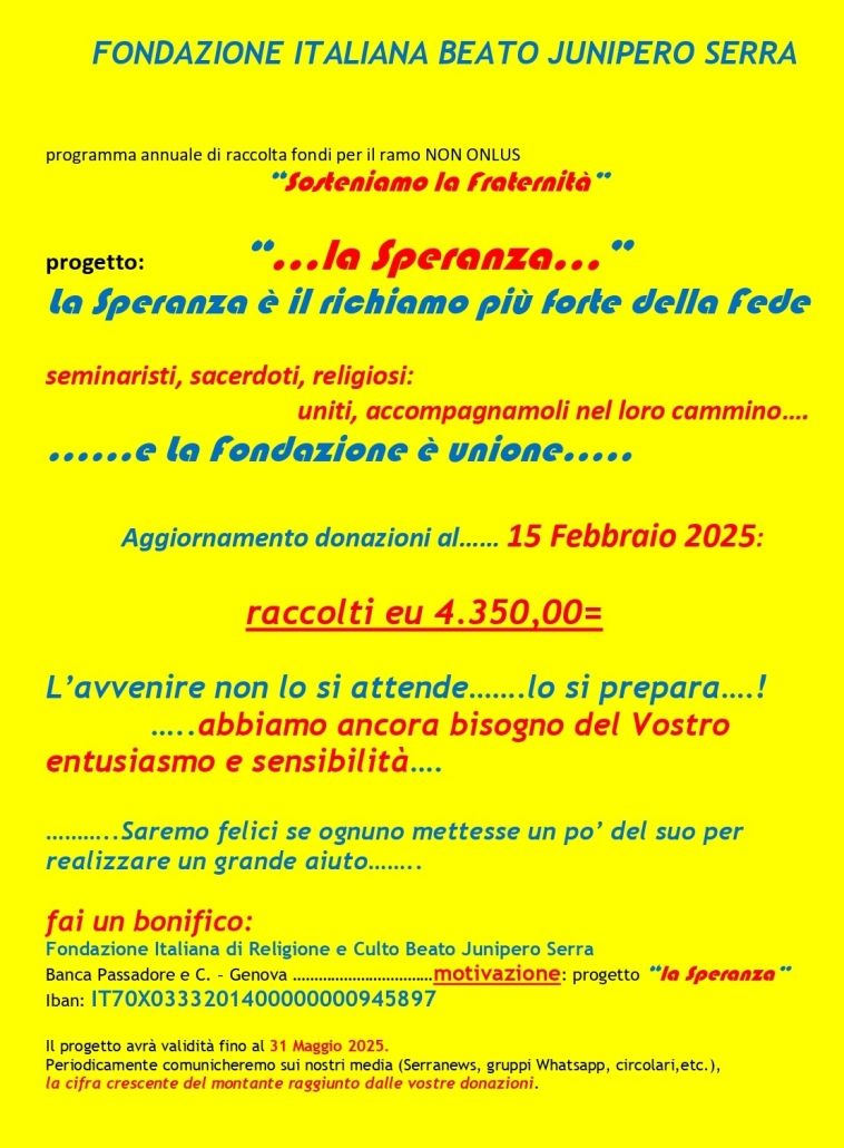 https://www.serraclubitalia.it/wp-content/uploads/2025/02/Sost-Frat.-La-Speranza-2°-agg-150225.jpg15081110Serra Club Italiahttps://www.serraclubitalia.it/wp-content/uploads/2023/11/logo-serra-club-italia.pngSerra Club Italia2025-02-22 12:08:582025-02-22 12:08:582° Aggiornamento dalla Fondazione Beato Junipero Serra
