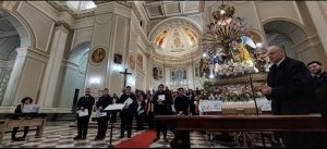 Mons. Alberti ha concluso dicendo :” Quando si canta si prega due volte. Quando trasformiamo la nostra gioia in canto, diventa giubilo. Stasera abbiamo vissuto un ‘esperienza giubilare, meditando con parole e musica. Attraverso l’Annunciazione la gentilezza di Dio si è incontrata con il Fiat di Maria”.