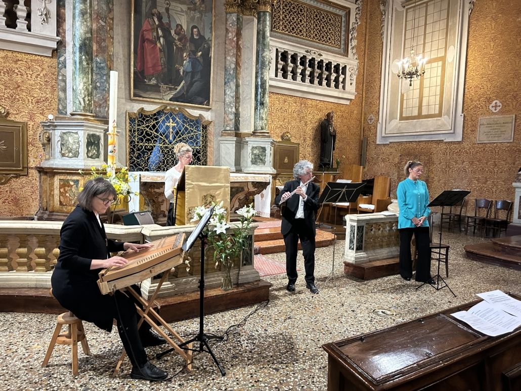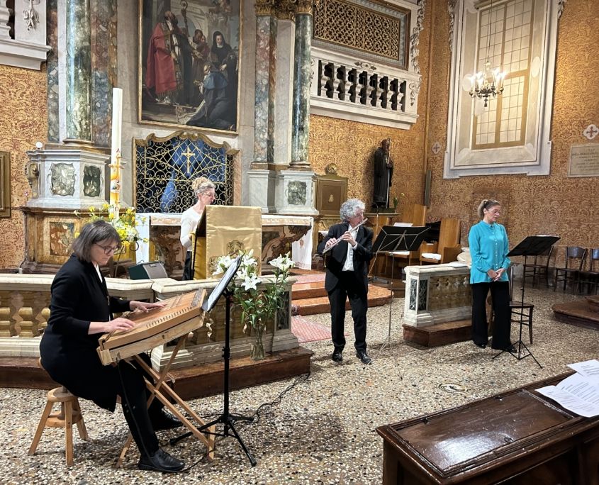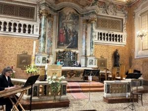 Si è esibito l’ensemble “VoxArtis”: soprano Stefania Sommacampagna, flauto Attilio Sottini, voce recitante Barbara Pizzetti, cetra Barbara Cavallini. I testi erano tratti dalle opere di Santa Chiara cui era dedicato l’evento al quale hanno partecipato, al di là della grata, anche le suore contemplative benedettine guidate da madre Maria Ilaria, intervenute con il coro in uno dei brani.