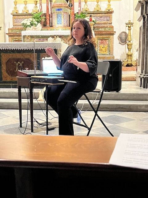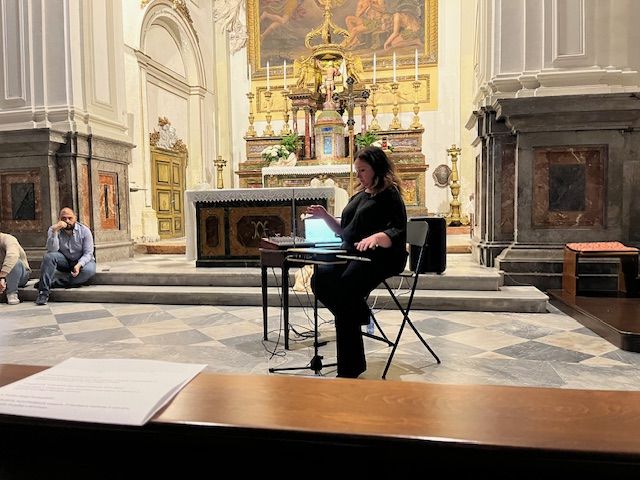 Dopo la premiazione si è passati nella chiesa di S. Maria di Monte Oliveto, annessa al Seminario, perché il Serra ha offerto un concerto veramente speciale: Suonare l’invisibile. L’artista Katia Raineri, accompagnata da una base musicale, ha utilizzato il theremin, strumento musicale ai più ignoto, con cui ha incantato, spaziando tra brani di autori differenti: da Mascagni a Morricone.
