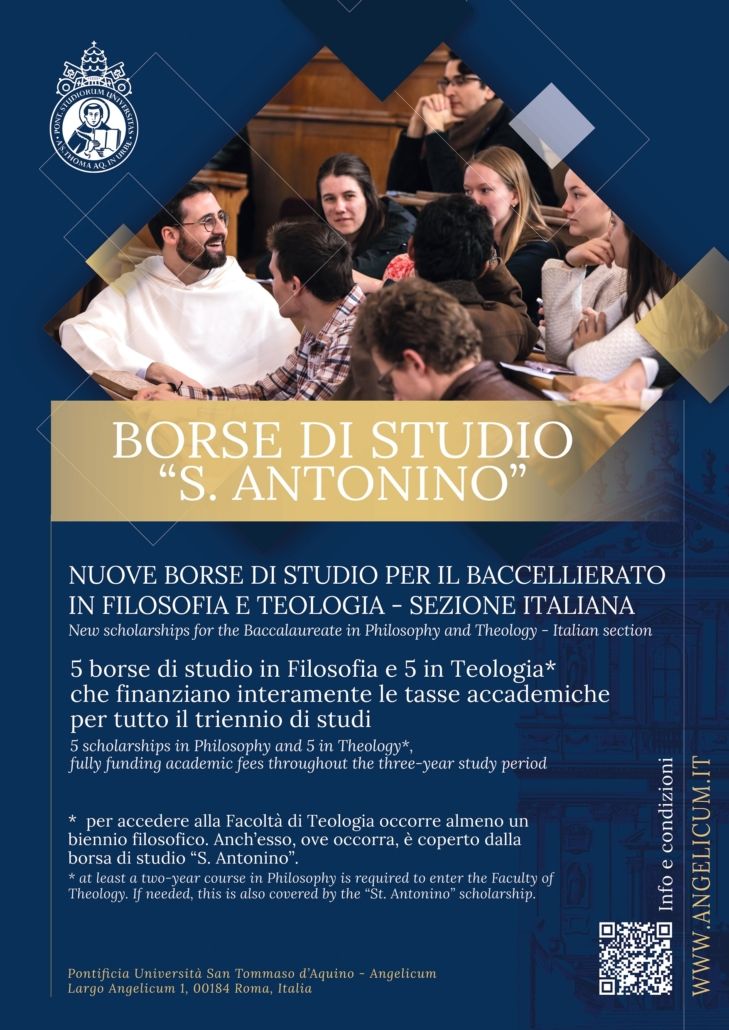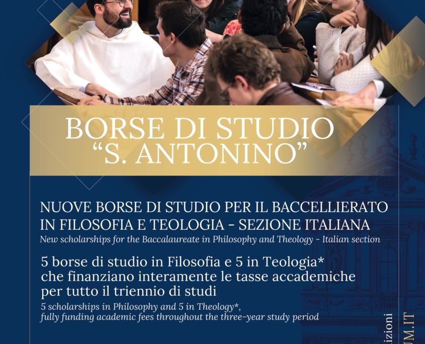 Una bella opportunità soprattutto per i nostri seminaristi: è quanto propone la Pontificia Università San Tommaso d’Aquino (Angelicum) annunciando l’apertura delle iscrizioni per la Borsa di Studio “S. Antonino” per l’anno accademico 2025/2026. Questa prestigiosa borsa di studio, dedicata all’illustre arcivescovo domenicano e patrono di Firenze Antonino Pierozzi (1389-1459), è destinata a nuovi studenti che desiderano intraprendere il percorso di Baccellierato nelle Facoltà di Filosofia e Teologia dell’Università, esclusivamente nella sezione italiana.