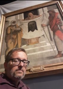 Prima del Concerto, Padre Vittorio Casalino ha fatto una breve introduzione   sulla storia della Chiesa e sulle Opere d’Arte presenti in essa. La “Suite”  ha condotto il pubblico a compiere un “viaggio spirituale” attraverso la Storia della Devozione al Volto di Cristo, dal tempo della Sua  vita terrena alla contemporaneità. E ciò attraverso la “testimonianza diretta”  di tre personaggi femminili che raccontano “in-canto” l’incontro  con  QUEL VOLTO CHE CAMBIA LA VITA. Berenice è la prima: Colei che soffriva di emorragie e fu sanata da Cristo,  appena riuscì a toccarGli il lembo del mantello. La seconda è Teresa di Lisieux, Suora Carmelitana con il nome di “Soeur Therese de l’Enfant Jesu et de la Sainte Face,” Dottore della Chiesa e per tutti noi Maestra della “Piccola Via.” Santa Madre Teresa di Calcutta è la terza Voce che racconta del suo incontro con il  Volto di Cristo. La Suite Spirituale è stata presentata in una versione straordinaria, in quanto l’Autore era anche voce solista, oltre che l’Organista. Alla Tromba Fabiano Cudiz, una delle prime trombe italiane più stimate in Italia e al’estero. Tepasso ha spiegato  che la Suite dedicata al Volto di Cristo,  Volto non fatto da mano d’uomo: Akeiropoieton, ma Volto disegnato dal Dito di Dio e intessuto nel Grembo della Santissima Vergine, è un vero e proprio itinerario giubilare.  Ha ricordato che dal 1300 in poi, per secoli, il “Culmine” del viaggio giubilare nella Città Santa era la partecipazione all’Ostensione del cosiddetto Velo della Veronica   in Vaticano.  In occasione del Giubileo del 1625, Papa Urbano VIII, a cui stava molto a cuore la promozione della devozione al  Volto di Cristo, fece inserire in medaglie e monete papali la raffigurazione del Velo della Veronica, la donna compassionevole che, lungo la Via del Calvario, asciuga il Volto sfigurato di Cristo condotto alla Crocifissione.