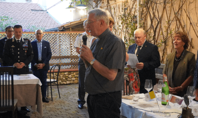 Le autorità militari presenti hanno pronunciato parole di ringraziamento e di commiato dalla nostra città, essendo giunte al termine del loro mandato, ringraziando il Serra Club, in precedenza a loro sconosciuto, per l’accoglienza, l’amicizia e l’arricchimento culturale e umano che è derivato dalla frequentazione del Club. In particolare Monsignor Simone Giusti ha ringraziato il Comandante dell’Accademia Navale Ammiraglio Lorenzano Di Renzo per aver lavorato con lui allo scopo di ottenere per Livorno una proficua collaborazione con L’Università degli Studi di Pisa, permettendo agli studenti di frequentare le lezioni all’interno dell’Accademia, facendo così della nostra città un Polo Universitario sussidiario. Monsignor Giusti ha proseguito sottolineando che la diffusione della cultura universitaria permette alla città di cogliere ulteriori possibilità di lavoro, favorendo la nascita delle cosiddette “start up”.