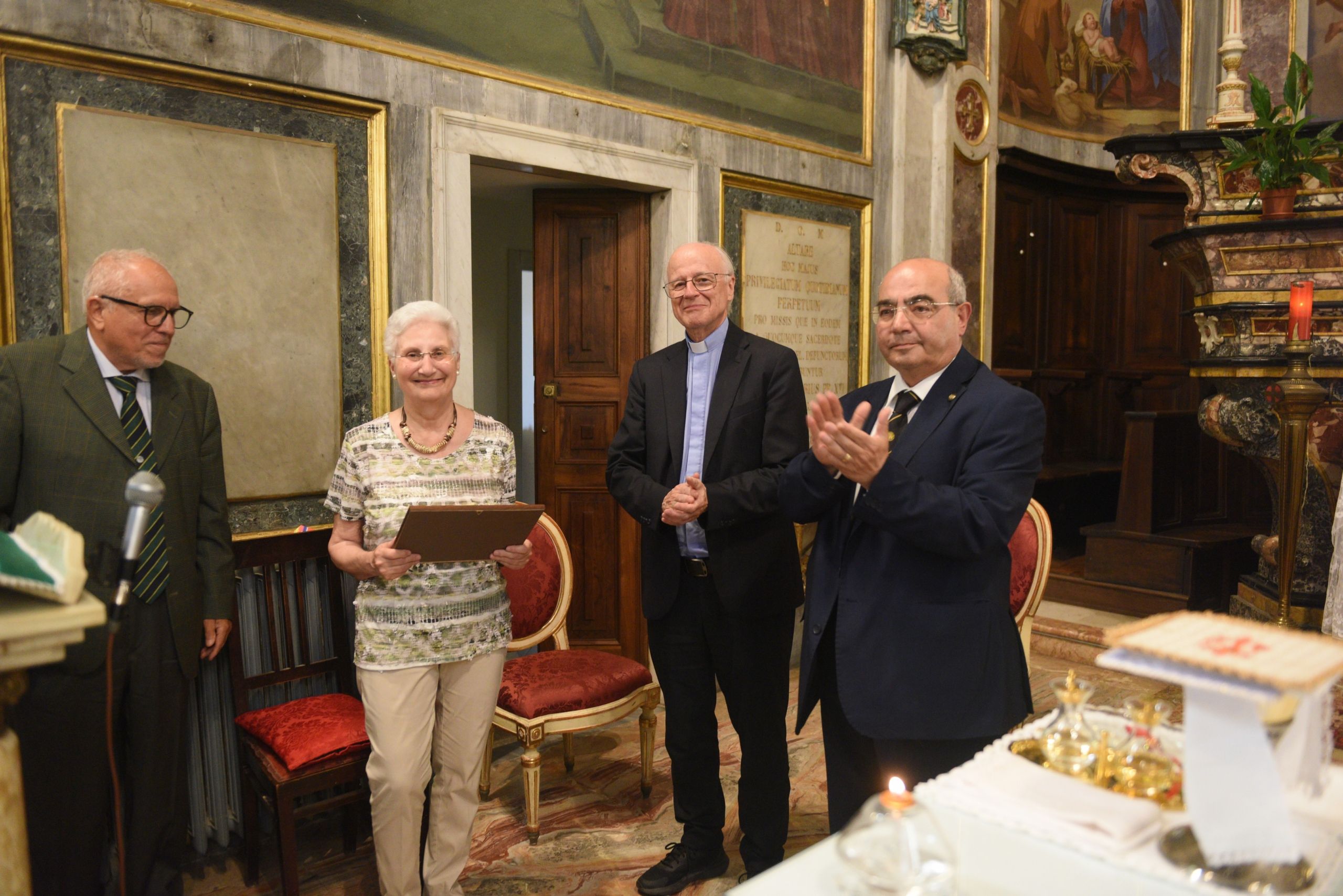 ACQUI TERME. Nell’accogliente Santuario della Madonnina, venerdì 27 giugno i soci del serra club della Diocesi con i loro famigliari si sono ritrovati per la serata di chiusura dell’anno sociale 2024/ 2025. Accolti dal presidente Michele Giugliano, hanno partecipato alla concelebrazione eucaristica presieduta dal Vescovo mons. Luigi Testore affiancato dal vicario generale mons. Paolo Parodi, dal parroco don Winston Carrera, dal diacono Carlo Gallo e dal seminarista Paolo Montecchiani. Nell’omelia il Vescovo ha fatto riferimento alla festa liturgica del Sacratissimo cuore di Gesù, che ricorreva quel giorno, come espressione del Suo amore per tutti gli uomini. Amore espresso anche nel testo del vangelo con il racconto della parabola della pecora smarrita in cui il pastore prova gioia per aver ritrovato la pecora che si era perduta. Nelle intenzioni di preghiera preparate da Angela Olivieri e lette da Lucia Barbarino si è pregato per papa Francesco, per il nuovo papà Leone XIV, per il nostro Vescovo Testore e per i sacerdoti della Diocesi in particolare per mons. Renzo Gatti mancato recentemente, per il seminarista Paolo, per i fondatori e soci del Serra Club di Acqui mancati nel tempo e in particolare per Adriano Negrini a dieci anni dalla sua morte. Al termine della messa la consegna del Premio S. Guido che quest’ anno è stato assegnato alla dott. Luisella Bormida per il suo impegno nel sostegno economico a tante parrocchie in Langa Astigiana. Dopo una breve presentazione della premiata, la consegna da parte di mons. Luigi Testore del premio, che consiste in tre medaglie d’oro e argento risalenti all’epoca di S. Guido realizzate dalla gioielleria Negrini. Il presidente Michele Giugliano ha ringraziato Tullia Toma’ ved. Negrini e i figli che quest’anno, nel ricordo di Adriano, hanno voluto offrire la targa. Ha, poi, letto un messaggio pervenuto dalla presidente diocesana dell’Azione Cattolica Barbara Grillo: “Desidero ringraziare il Serra Club per l’invito a partecipare alla premiazione della Dott.ssa Luisella Bormida. Penso che abbiate individuato davvero una persona speciale a cui consegnare questo premio. Credo che sia il giusto riconoscimento per la sensibilità e disponibilità di una splendida persona e di questo noi di Azione Cattolica siamo i primi testimoni”. Concetti ripresi nel suo breve intervento anche dal prof. Vittorio Rapetti che si è particolarmente soffermato sul significato e sull’importanza del “donare” alle altre persone le cose belle che ci sono e permettere agli stessi di poterne usufruire. Nel suo breve intervento, Luisella Bormida dopo aver ringraziato “Il Serra Club per il riconoscimento particolarmente gradito” ha invitato i presenti “a visitare le tante chiese belle e significative che ci sono nella alta Langa Astigiana, paesi dove è possibile anche riscoprire la bellezza di una natura ancora incontaminata e godere del silenzio che ci porta ad essere più vicini all’opera del Creatore”. Il seminarista Paolo Montecchiani da parte sua ha voluto ringraziare i soci del Serra Club “per la vicinanza a lui sempre dimostrata in questi anni” spiegando brevemente il suo percorso di studi fatto e quello ancora da percorrere per arrivare prima al diaconato e, dopo, all’ordinazione sacerdotale, rinnovando l’invito a pregare per lui assicurando da parte sua il ricordo di tutti i soci nelle sue preghiere”. Dopo il trasferimento alla mensa della solidarietà mons. Giovanni Galliano, con la presenza anche del vice cappellano don Domenico Pisano è stato possibile rivedere la premiazione, avvenuta domenica 21 giugno a Bologna, del video proposto dalla scuola Primaria Parificata ToBe Together di Acqui che ha vinto il primo premio al Concorso scolastico nazionale. Alla premiazione era presente anche Lucia Barbarino, Governatore del Distretto 69 del Serra Club, e l’insegnante Elisa Cavanna con il figlio Samuele Patrucco in rappresentanza della Scuola Premiata. Nel suo intervento, la prof. Rita Parodi, direttrice della scuola, ha espresso la sua gratitudine per il premio ricevuto ricordando come gli alunni, sotto la guida dell’insegnante, abbiano con passione lavorato durante tutto l’anno scolastico per la preparazione del filmato che è stato premiato. Al termine della conviviale, il saluto del presidente Michele Giugliano che, commosso, ha brevemente ripercorso le iniziative portate avanti dal Club nel corso dell’anno sociale informando che “su proposta del nostro Club Lucia Barbarino è stata riconfermata per i prossimi due anni come Governatore del Distretto 69 del Serra Club. Ha ringraziato il tesoriere Giuseppe Lanero, Efisio Chiavegato organizzatore della serata e il coordinatore del Concorso scolastico Gian Carlo Callegaro. La conclusione con la consegna da parte del vescovo e cappellano del Club mons. Luigi Testore del distintivo al nuovo presidente Monica Cavino che sarà affiancata nel suo compito dalla segretaria Ivana Nervi.