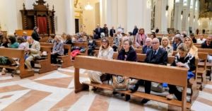 Nella Basilica di San Bernardino da Siena una moltitudine di fedeli, anche giovanissimi, hanno seguito l’incontro sin dalla Santa Messapresieduta dall’Arcivescovo Metropolita della Chiesa di L’Aquila S.E.R. Mons. Antonio D’Angelo e concelebrata dal Rettore della Basilica Padre Daniele Di Sipio.