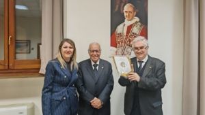 La testimonianza è stata di fatto un profondo appello alla Pace e alla responsabilità che ognuno di noi ha nel proprio ambito ed esistenza. La serata, anticipata dalla Santa Messa officiata da Mons. Vittorio Formenti, Cappellano del Serra di Roma e del Distretto 72, è stata mirabilmente introdotta dal Presidente Avv. Emilio Artiglieri e dal Governatore del Distretto 72 Lazio, Campania, Abruzzo Dott. Roberto Razzano. Il Dott. Razzano cosi si è ad esempio espresso: “Il tema dell’anno e di questa sera ci interpella con forza e realismo. Geremia denuncia una pace proclamata a parole ma non vissuta nei fatti: una pace apparente, superficiale, che non guarisce le ferite profonde del popolo. Anche oggi sentiamo parlare spesso di pace: nei discorsi politici, nei summit internazionali, nei media, persino nei nostri ambienti quotidiani. Ma intorno a noi e spesso in noi la pace autentica sembra mancare. Guerre e conflitti, divisioni sociali, violenze, solitudini e povertà spirituali ci ricordano che la pace non è un bene scontato, né un semplice risultato diplomatico. È un cammino da costruire, giorno per giorno, con responsabilità, verità e conversione. Come Serrani, non possiamo restare spettatori. La nostra missione di sostenere le vocazioni, servire la Chiesa e testimoniare i valori cristiani è intimamente legata alla costruzione della pace. Perché la pace vera nasce nei cuori rinnovati, si diffonde nelle comunità riconciliate, si incarna nelle mani che si tendono, nelle parole che curano, nei gesti che uniscono. Il profeta Geremia ci ammonisce: proclamare pace senza cambiare i cuori è illusione. Ma noi siamo chiamati a un passo in più: a diventare artigiani di pace. Artigiani, non spettatori: persone che lavorano pazientemente, con intelligenza e amore, per costruire ponti, per far fiorire vocazioni e speranze anche nei contesti più difficili. Ci auguriamo che ogni nostra iniziativa, di formazione, di preghiera, di servizio, porti con sé questo respiro di pace! San Francesco diceva “Signore, fa’ di me uno strumento della tua pace”, un’invocazione che possa essere la nostra preghiera comune e la nostra azione quotidiana”.