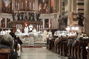 Giorno 8 dicembre, festa della Immacolata Concezione, la chiesa pisana e con essa i Club 449 di Pisa e 573 di Cascina, hanno festeggiato l’ordinazione presbiteriale di don Simon Pietro Vignon Mawuli Agbolo e l’ordinazione diaconale di Roberto Zucchi. La cerimonia è stata presieduta da sua eccellenza padre Saverio Cannistrà arcivescovo di Pisa. Hanno concelebrato il Vescovo emerito di Pisa mons. Giovanni Paolo Benotto e una folta rappresentanza del clero pisano. Al nuovo presbitero e al nuovo diacono vanno le preghiere dei club di Pisa e Cascina e un fervido augurio per un proficuo cammino religioso al servizio dei fratelli. Come infatti è stato richiamato da padre Saverio Cannistrà nella sua omelia, il conferimento dei ministeri sacerdotale e diaconale è “l’incarico” a farsi ultimi.  “Ministero” deriva dal latino ministerium che significa servizio ed è fatto proprio dalla Chiesa per indicare un cammino antitetico al pensare corrente: il crescere di grado corrisponde ad uno scendere, ad un farsi sempre più umili e prossimi, e sempre più solerti nel servizio. E poi “l’Ordine”. Essere ordinati significa entrare a far parte di una comunità per un cammino che non sia del singolo ma che faccia trasparire l’agire condiviso e comunitario della “chiesa”.