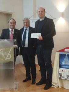 Dopo l’intervento di Gaetano Cammarata, il presidente del Serra Club di Caltagirone Franco Canale ha consegnato al Rettore del nostro Seminario don Salvo Luca il frutto tangibile della iniziativa, frutto determinato in euro 2.000,00 portato da assegno circolare intestato a “Seminario Vescovile di Caltagirone”, con la espressa preghiera da parte del Club che detta somma il Rettore d’intesa con S.E. il Vescovo, possa impiegarla per le esigenze di uno o più seminaristi, esigenze ad essi certamente note.