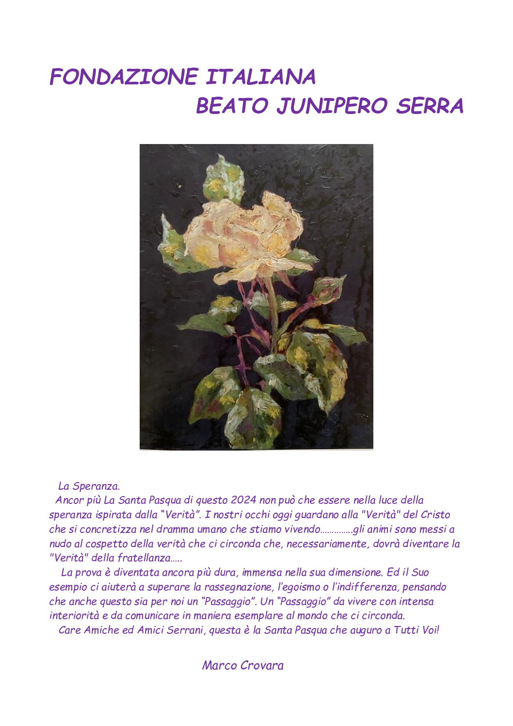 Fondazione Italiana Beato Junipero Serra – Raccolta fondi “La Speranza” e messaggio di Natale del Presidente Crovara