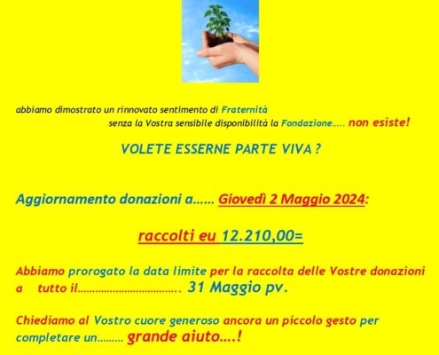 si sta avvicinando la scadenza per la firma del 5x1000 e Vi scrivo per ricordarVi che la nostra Fondazione, nel "Ramo Onlus", può beneficiare dei Vostri contributi con un semplice gesto che, richiamando le parole di Papa…